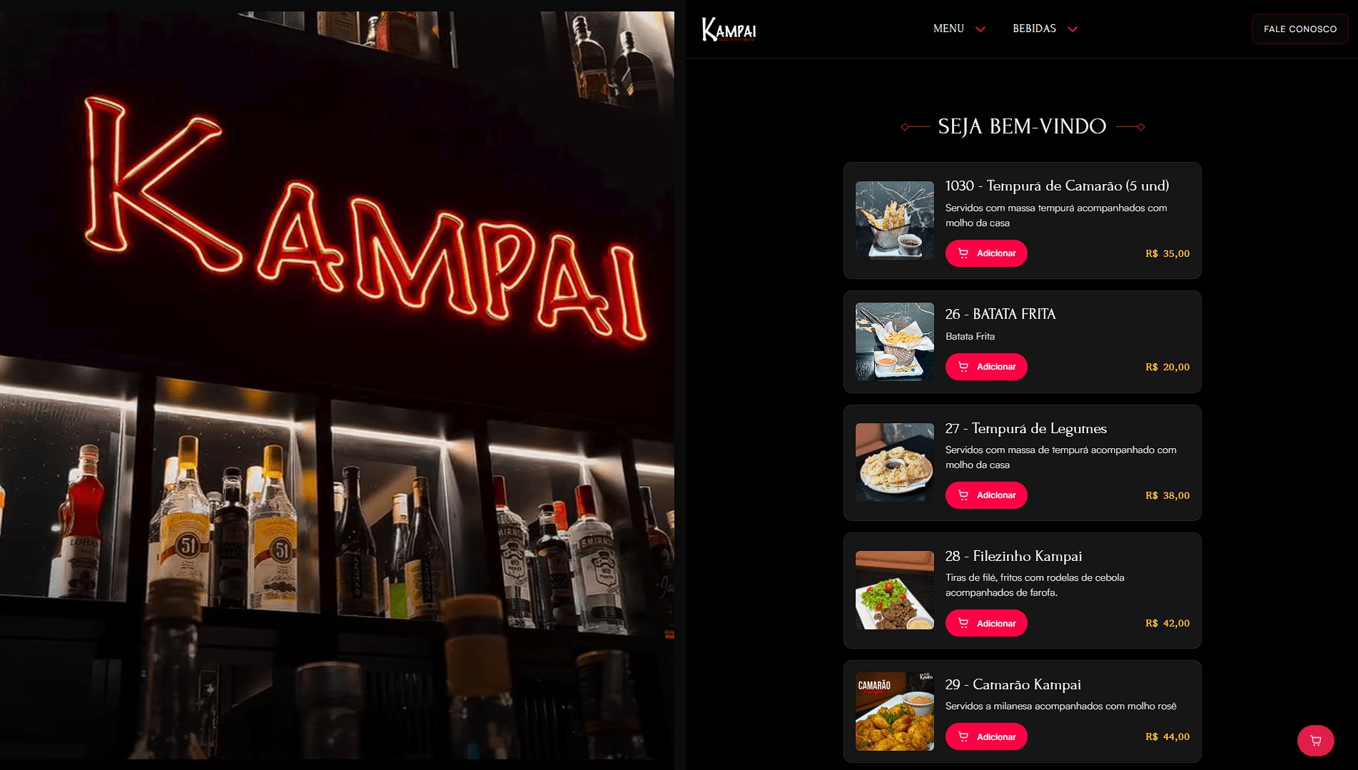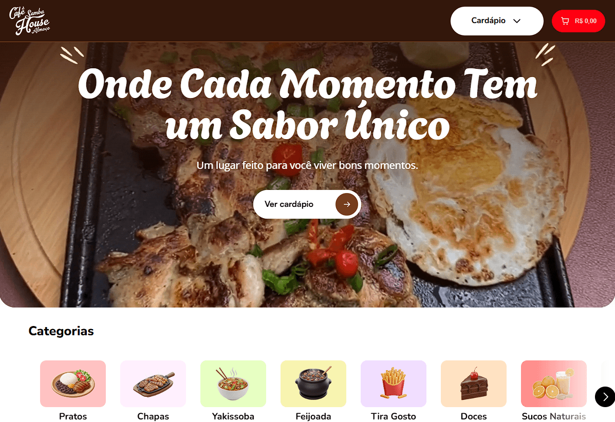 Um cardápio digital fluido, moderno e intuitivo que transforma visitas em pedidos reais.