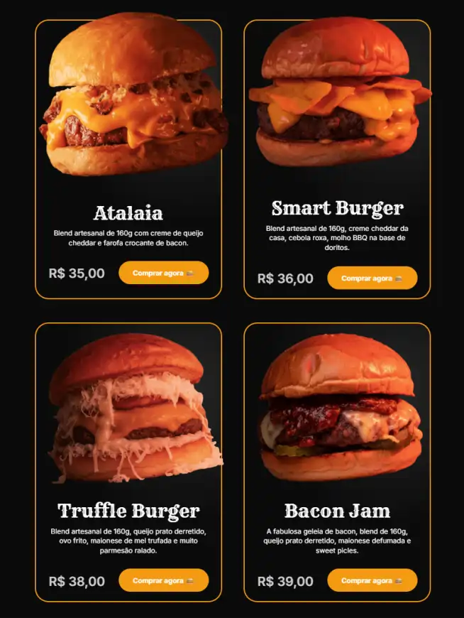 Layouts pensados para valorizar seus produtos, destacar imagens e criar uma experiência visual que estimula o cliente a pedir mais.