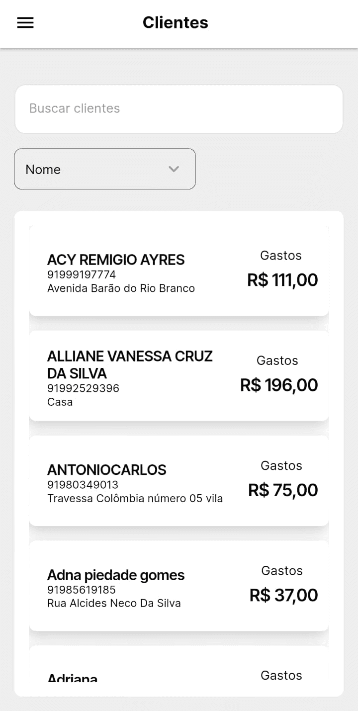Visualize informações dos clientes, histórico de pedidos e dados importantes para relacionamento.
