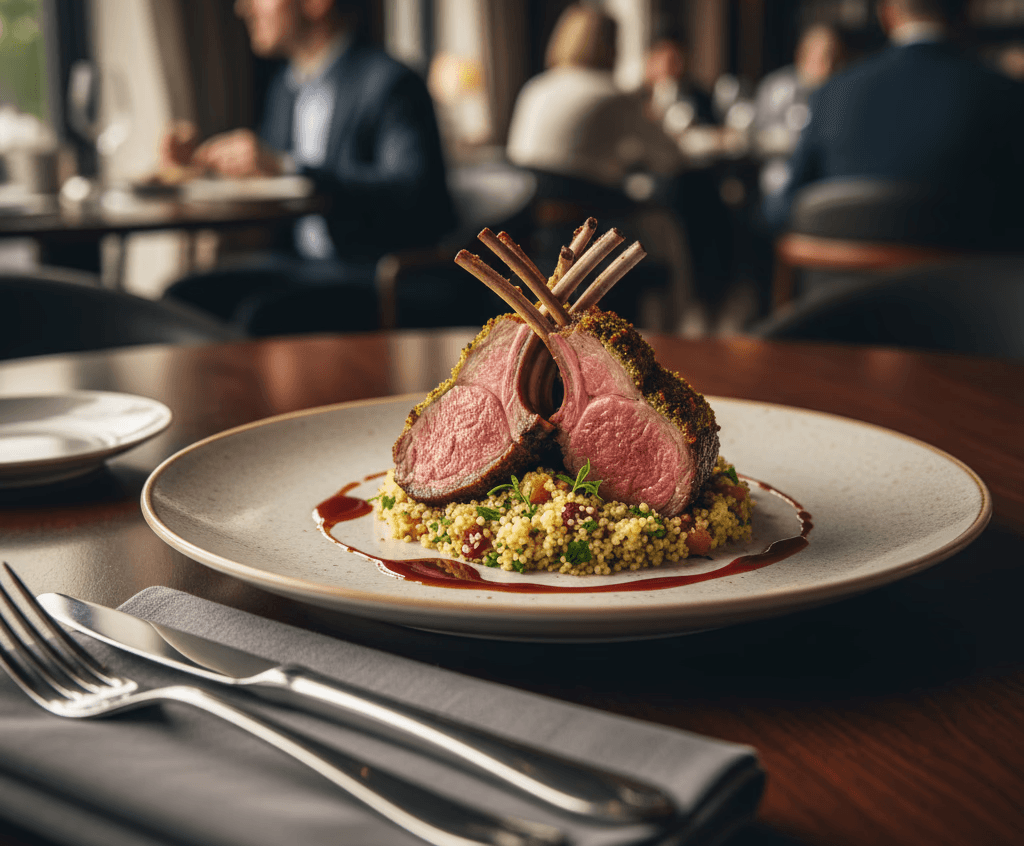 Cordeiro em crosta de ervas com cuscuz marroquino
