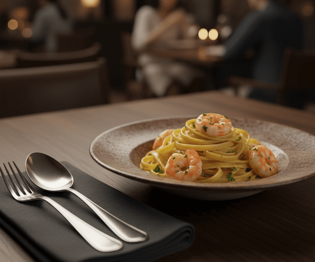 Massa artesanal com camarões e limão siciliano