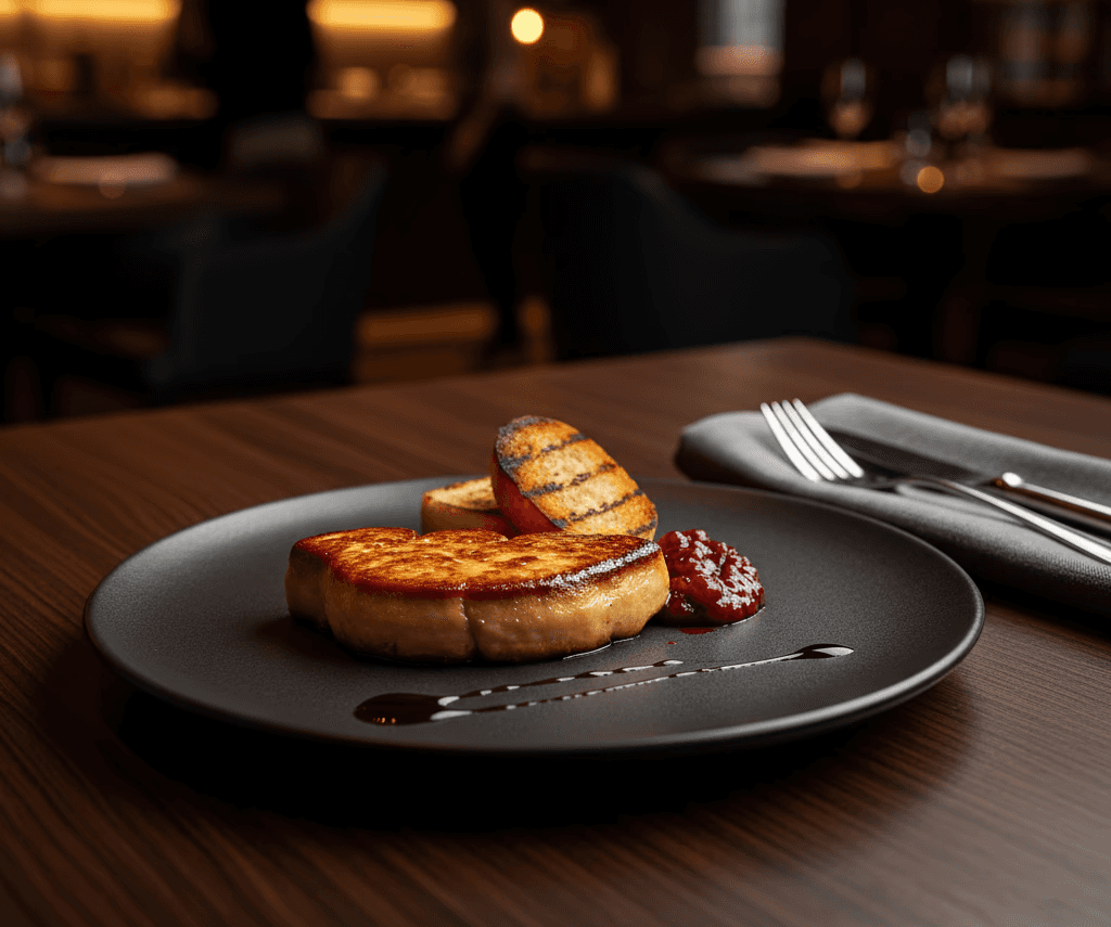 Foie gras dourado na manteiga, brioche e compota de frutas vermelhas