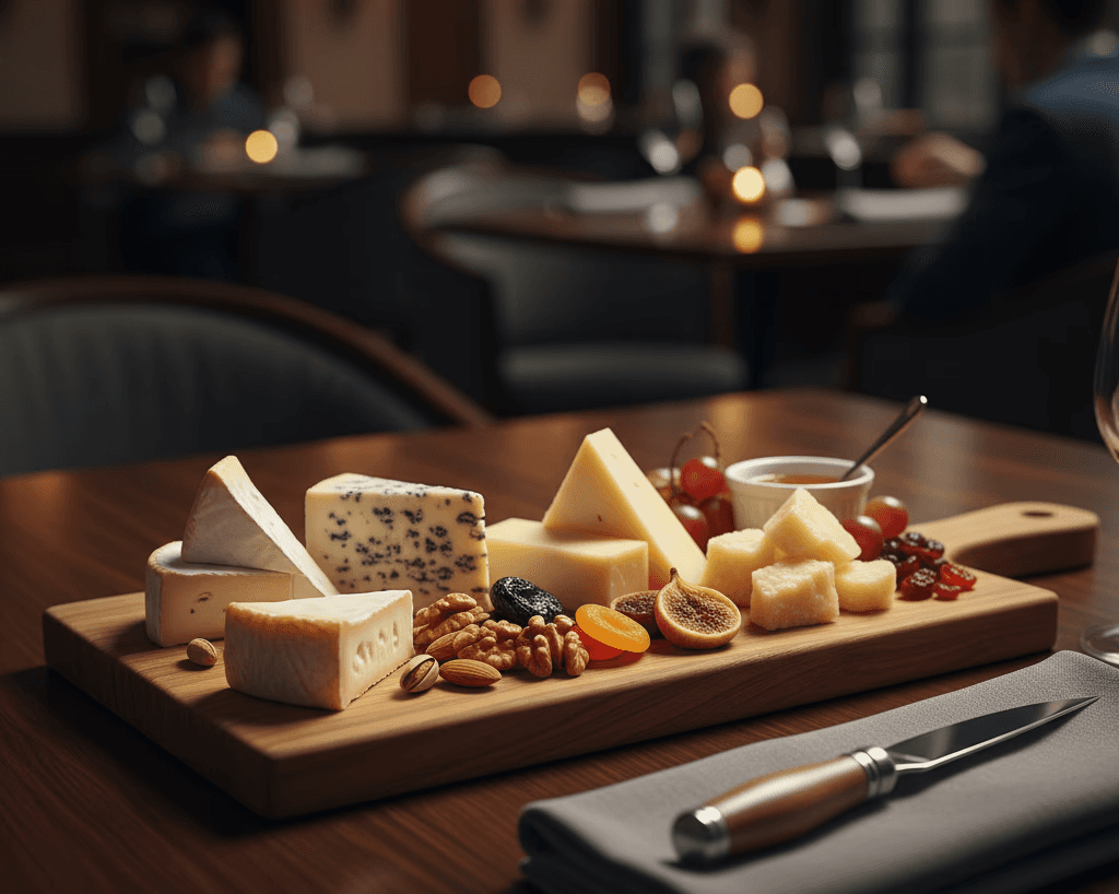 Queijos nacionais e importados, servidos com acompanhamentos