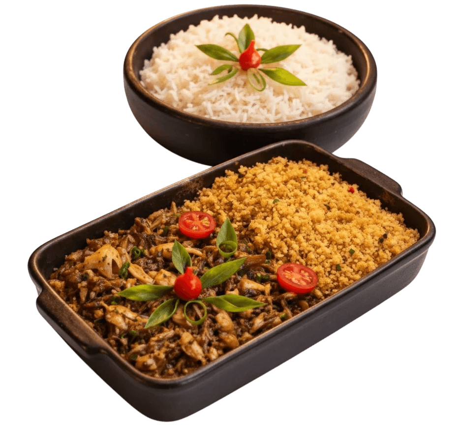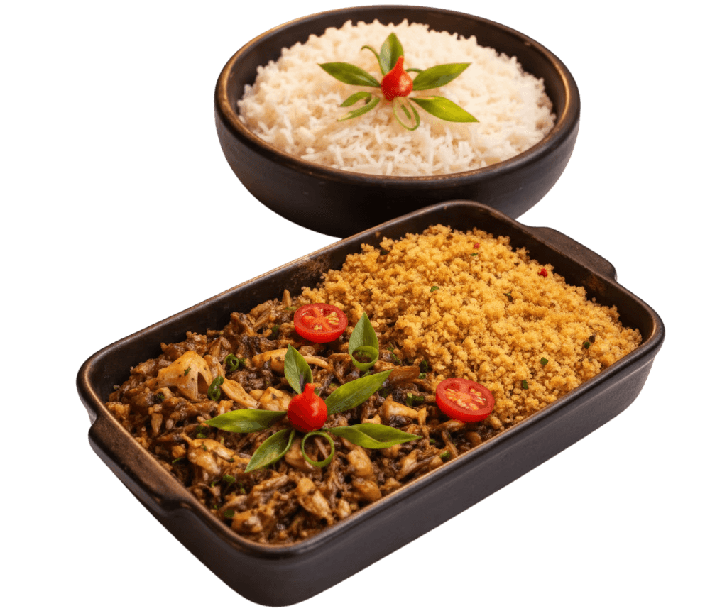 Carne de caranguejo refogada, finalizada com farofa. Acompanha arroz.