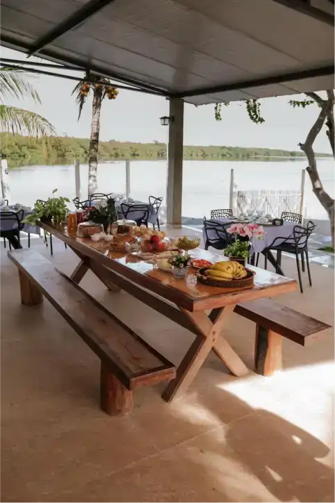 Um ambiente acolhedor, pensado para proporcionar conforto, boa energia e momentos inesquecíveis. Peixaria, pousada & marina | Curuça/PA.