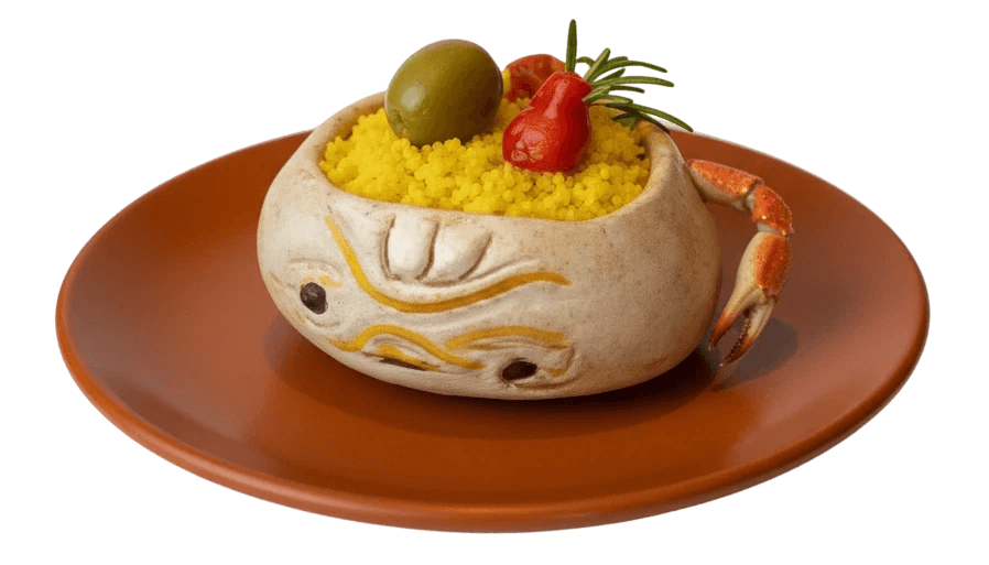 Massa de caranguejo natural, bem temperada, coberto com farofa.