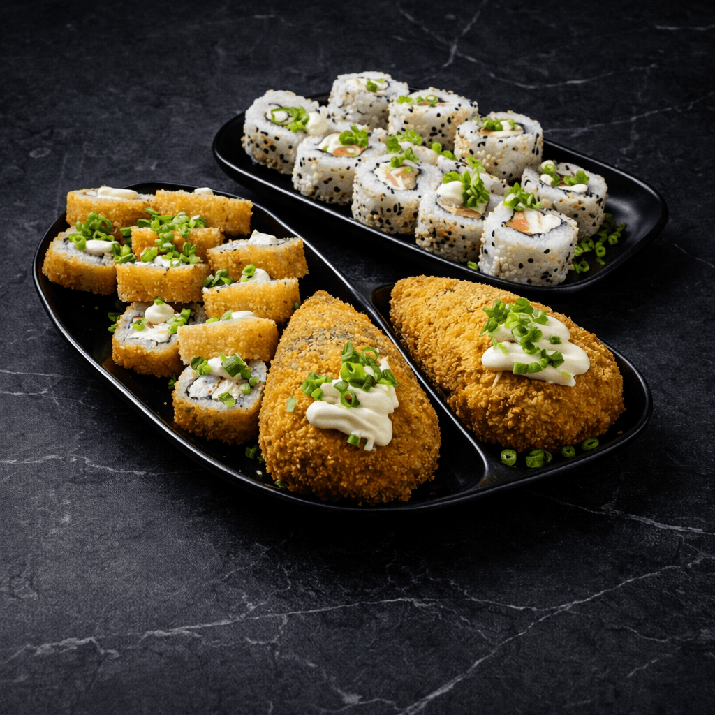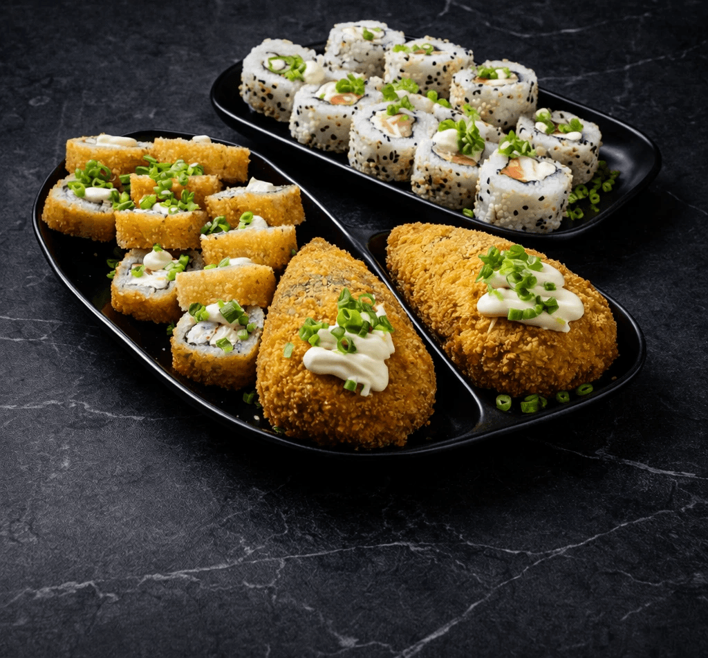 Petiscos e pratos especiais inspirados na culinária japonesa.